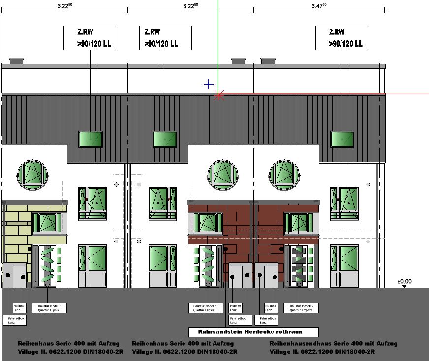 Um die Häuser wirtschaftlich auf kleinen Grundstücken mit 6,225 m Breite zu realisieren können im erdgeschossigen Zugangsbereich die Bewegungsflächen vor der Haustüre sowie der Wohnungseingangstüre nicht vollständig eingehalten werden.